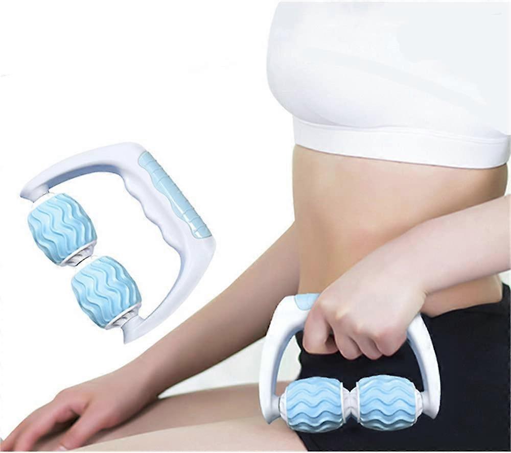 Anti-Cellulite Massager, Manual Foam Massage Roller, 360 Foam Roller for Deep Tissue Muscle Massage, 2 Wheels, Hand Massage and Leg Massage (Blue)