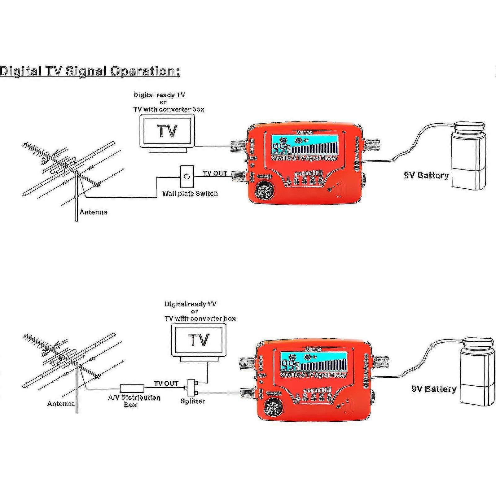 2 i 1 Satellit- og tv-signalfinder Lcd Digital satellitfinder Bærbar tv-antenne signalstyrkemåler Signalsøgningsmåler med kompasalarm B