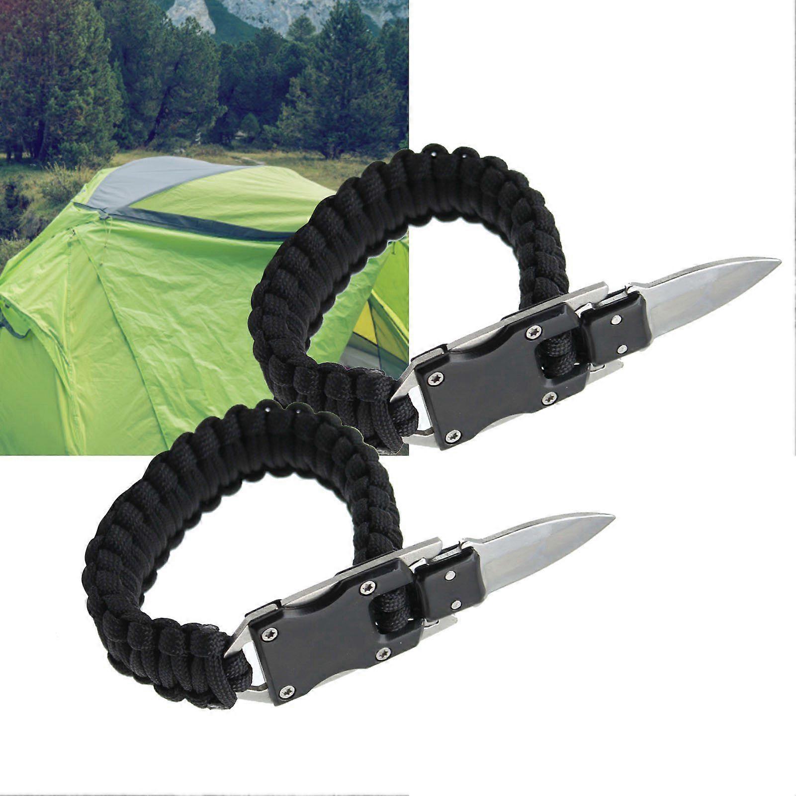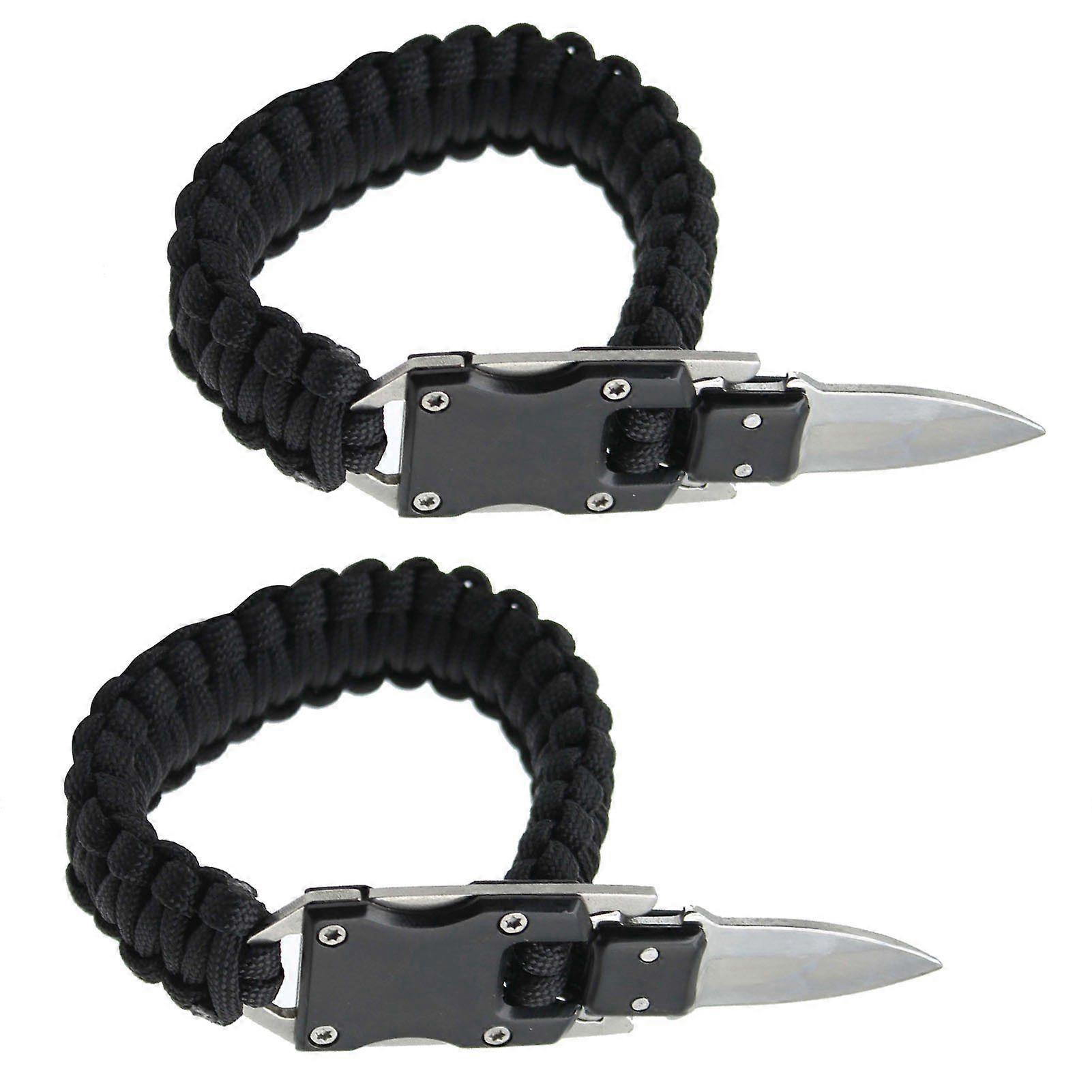 2 Pcs Pulsera de Emergencia al Aire Libre Negro Verde Caja Fuerte Acero Inoxidable Portátil 7 Núcleos Paracord Pulsera de Supervivencia con Cuchillo