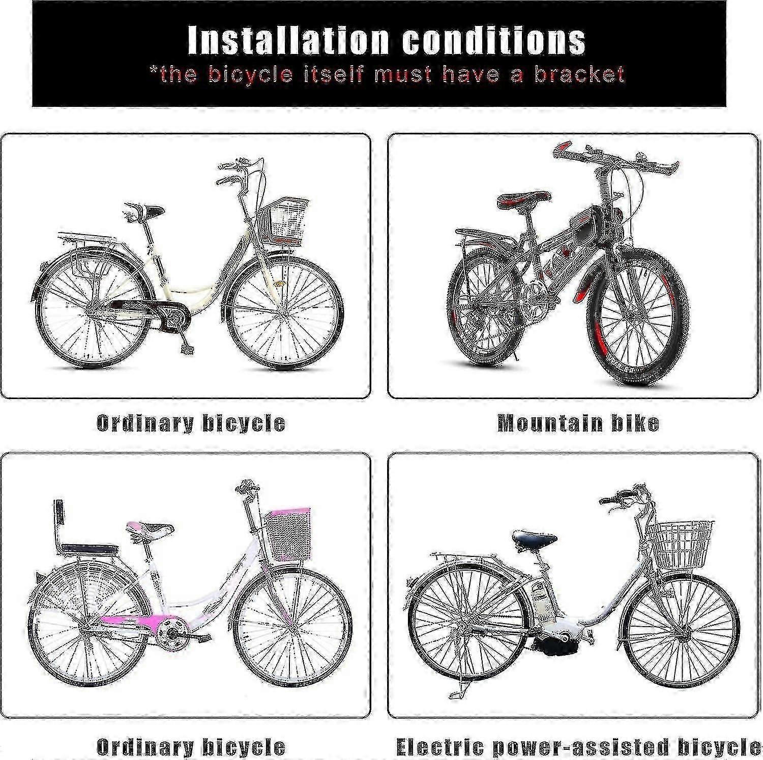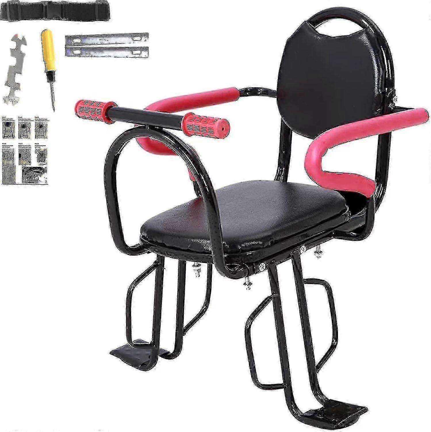 Ympäristöystävälliset materiaalit: Nahkatyyny, ruostumaton teräsputki, pehmeät käsinojat. Myrkytön, hajuton, kestävä ja turvallinen käyttää. Turvallisuus: Liukumattomat kaiteet ja polkimet pitävät lapset turvassa, mukavasti ja vapaasti pyöräillessä, eivät kosketa jalkoja. Mukana toimitetaan asennustyökalut ja turvavyöt lasten turvallisuuden varmistamiseksi. Vakaus: Sopii vakaampiin, tukevampiin, turvallisempiin, paksunnettuihin ja levennettyihin tyynyihin lastenistuimiin. Helppo asentaa: Tehokas pikairrotuskokoonpano istuinten helppoa asennusta ja irrottamista varten, sopii kaikenlaisille polkupyörille, kuten maastopyörille, sähköautoille jne. Tärkeitä parametreja: Polkupyörän takaistuimen leveys: 13 tuumaa, korkeus: 7 tuumaa. Selkänojan korkeus: 21 cm, enimmäiskuorma 45 kg, sopii 2–7-vuotiaille lapsille.